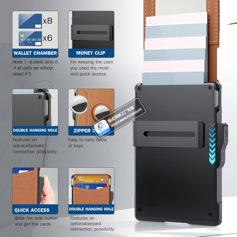 AirTag Wallet for Men – with Pop Up Aluminum Case Money Clip Slim Leather Slots Credit Card Holder RFID Blocking Bifold Minimalist Wallet